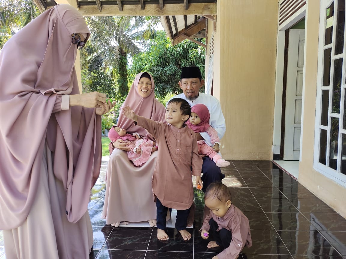Ini momen yang jarang terjadi, anggota keluarga Bapak Abdul Hamid bisa lengkap squadnya.